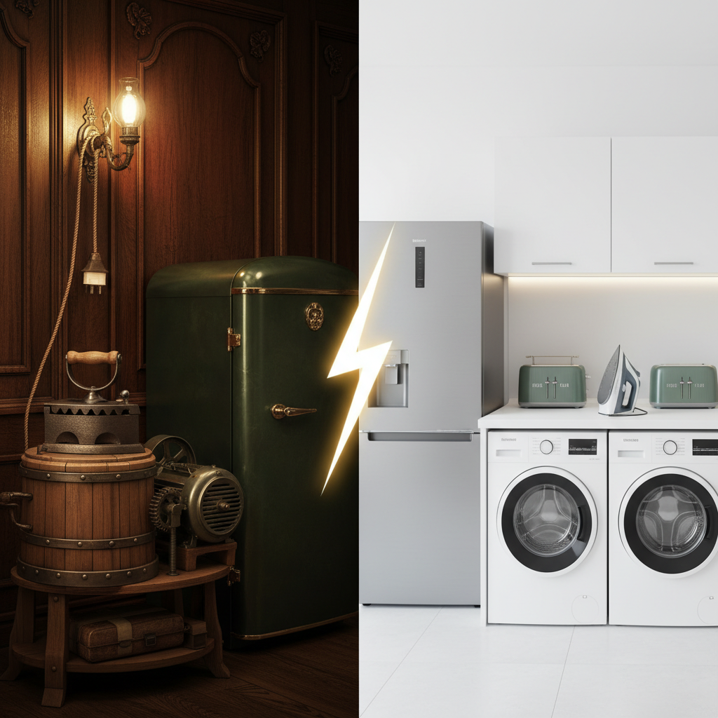 Šiandien mūsų kasdienybė yra neatsiejama nuo technologijų: vos pramerkę akis, jungiame elektrinį virdulį, išmanusis šaldytuvas primena apie besibaigiančius produktus, o robotas siurblys tyliai atlieka savo darbą, kol mes geriame rytinę kavą. Tačiau prieš kiek daugiau nei šimtmetį toks scenarijus būtų atrodęs kaip gryniausia mokslinė fantastika. Elektros atėjimas į namus ir pirmųjų buitinių prietaisų atsiradimas iš esmės pakeitė ne tik namų ruošos įpročius, bet ir visą visuomenės gyvenimo būdą. Pirmieji įrenginiai toli gražu nepriminė šiandieninių elegantiškų ir saugių prietaisų – jie buvo sunkūs, gremėzdiški, neįtikėtinai brangūs ir kartais netgi pavojingi gyvybei. Tai buvo laikmetis, kai inovacija žengė koja kojon su rizika, o elektra laikyta ne būtinybe, bet išskirtiniu elito statuso simboliu.